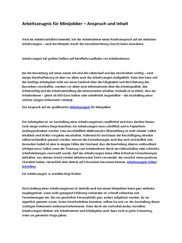 Seit 2003 regelt § 109 der gewerbeordnung (gewo), dass arbeitnehmer „bei beendigung eines arbeitsverhältnisses anspruch auf ein schriftliches zeugnis haben.